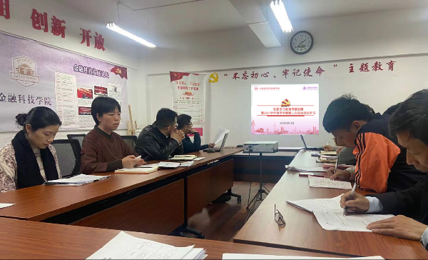 褚红素从党史学习教育的重要性切入,带领全体教师学习《铭记百年党史,赓续红色基因,写好立德树人奋进之笔》,解读了学院党史学习教育实施计划;梳理了习近平总书记关于教育的重要论述,并从九个方面深刻理解和准确把握其科学内涵;紧紧抓住学生和教师两个关键群体分析教师承担的时代重任以及应具有的素养,明确“双一流”建设定位,不忘立德树人初心,牢记为党育人、为国育才使命,努力建设“特色型、应用型、创新型、开放型”高水平财经大学。