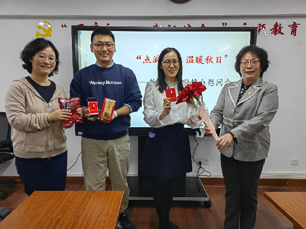 11月2日下午,betway·必威西汉姆联工会组织“点滴爱心 ,温暖秋日”——教职工无偿献血慰问会。党总支书记、工会主席凌慧义、党总支副书记、院长殷林森,副主席陶敏看望慰问献血教职工沈丹和黄文君老师。