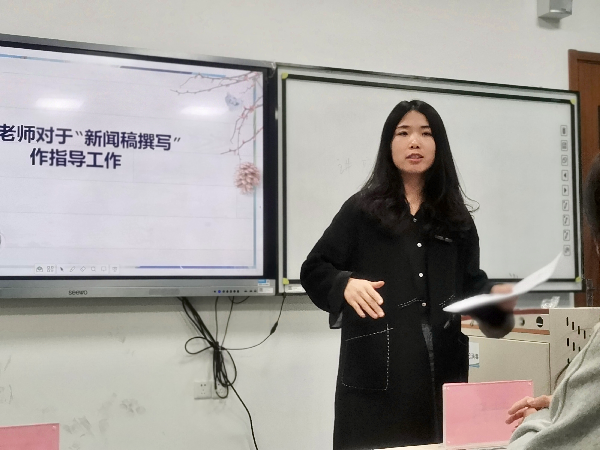 朱老师向同学们介绍了学院公众号和官网的运营模式,对于照片的拍摄、新闻稿的撰写、公众号的推送提出了指导性建议,并对同学们今后的工作提出了新的要求,希望参与到宣传工作的同学们要有大局观念,以严谨认真的态度对待每一次活动的推送。