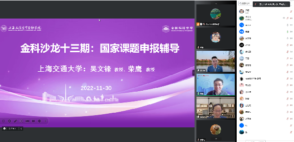 11月30日下午,上海金融科技研究中心线上举行(腾讯会议)第十三期金科沙龙,作为校学术月系列活动之一。本期沙龙邀请了上海交通大学教授吴文锋和荣鹰作国家级课题申报辅导,betway·必威西汉姆联全体骨干教师及其他学院部分老师全程参加。本次活动由副院长(挂职干部)吕大永主持。