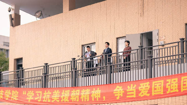 随后2019级金融科技1班程小涵代表学生发言,她带领同学们回顾历史伟大征程的同时加深了大家对抗美援朝精神的情感共鸣,号召同学们应当继续传承伟大的抗美援朝精神,以舍我其谁的勇气和敢打敢拼的锐气,攻坚克难,在学习工作中增强本领,向英雄献礼,向历史献礼。