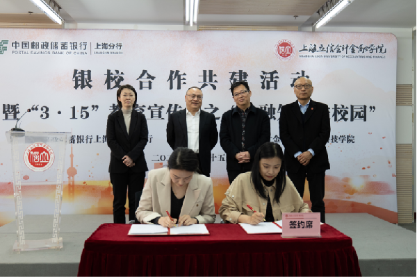 (邮储银行上海分行团委书记孟乃珍与校团委书记魏康婧签署共建协议)