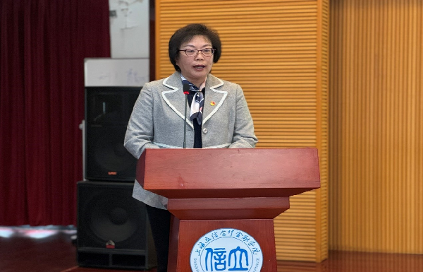 沈劼代表校工会致辞,她充分肯定了学院三年来取得的努力和成绩,对学院工会的工作表示肯定与感谢。她希望学院的全体教职工能够行使民主权利,积极参与学院民主管理和民主监督,共谋学院改革、发展大计,全面推动学院及学校各项事业的发展。