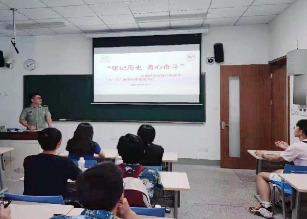 张文鹏老师先带领大家回顾“九一八事变”,他说:“要铭记历史,勿忘国耻,现代青年要持有一颗勇于奋斗的心。”他强调,新时代的中国青年要学史明理、学史增信、学史崇德、学史力行,以实现中华民族伟大复兴为己任,增强做中国人的志气、骨气、底气,不负时代,不负韶华,不负党和人民的殷切期望。他期望新生要坚定理想信念,厚植爱国情怀,加强品德修养,增长知识见识,练就本领,增强身体素质,为建成富强民主文明和谐美丽的社会主义现代化强国而努力奋斗。