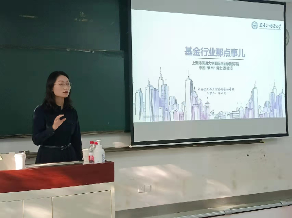 李蕊先向同学们分析了基金行业当下的大致情况以及面临的问题和挑战,讲解了公募基金和私募基金的区别。随后,介绍基金行业需要的是投资研究类,运营管理类,市场营销类和金融科技类的人才。同时强调了如果具备优秀的学历学位、资质证书、实习经历和职业网络,那么将会有更强的竞争力。