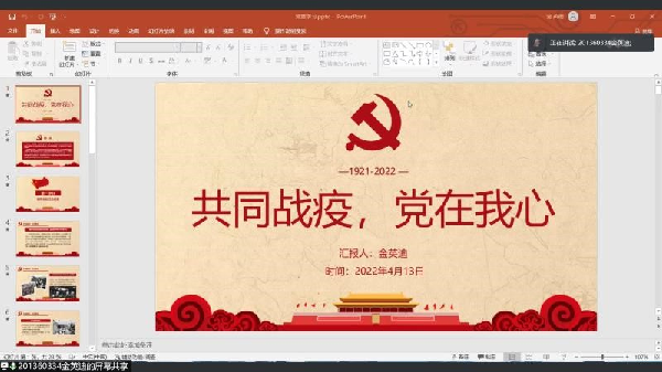 金英迪由在当今上海疫情严峻的情势下,党员的无私奉献与认真负责引出问题:是什么铸就了党员的优秀精神?然后主要从三个方面进行原因阐述。一,回顾党的红色历史,坚定进行伟大斗争的决心。二,回顾党艰辛发展的建设历史,坚定推进伟大事业的恒心。回顾历史,中国共产党始终坚持一步一个脚印,在艰辛探索中前行,在与时俱进中革新。三,展望党高歌猛进的奋进历史,坚定实现伟大梦想的信心。重温党的光辉历程,青年们既要不忘初心、砥砺奋进,展望党的美好未来,更要与时俱进、锐意进取,为实现中华民族伟大复兴的中国梦而逐梦前行。