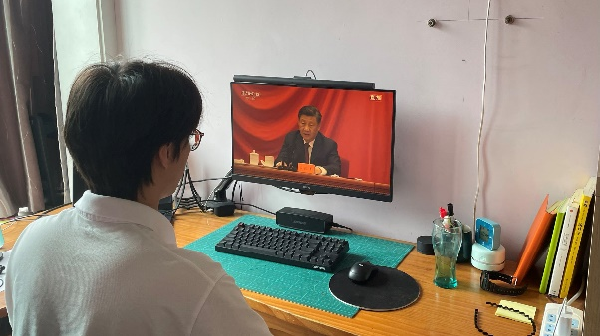 学生党员、2022届毕业生黄可欣:在这个繁荣开放的时代,祖国经济飞速发展,我们要共同为中华民族的伟大复兴肩负起使命担当。我们要增强团员意识,弘扬与时俱进的学习精神,坚定理想信念,不忘初心,牢记使命,做一个中国新时代的优秀共青团员。