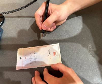 留言卡上,党员同志们写下对中国共产党的美好祝福,表达对党和祖国的衷心热爱。