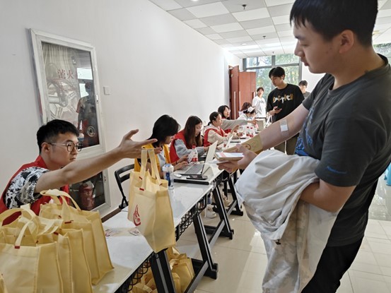 活动现场,参与献血的同学们在志愿者的引导下,认真填写登记表、进行健康征询、血液初筛,以伸出手臂、捐献热血的方式,为生命助力、为爱礼赞。在献血过程中,学院领导与辅导员们仔细地询问献血同学们的身体状况,无微不至地关怀温暖了献血的同学们,“小菁卫”志愿者们前往现场分发学院慰问品,让献血的同学们感受到满满暖意,让整个金科大家庭更加团结。