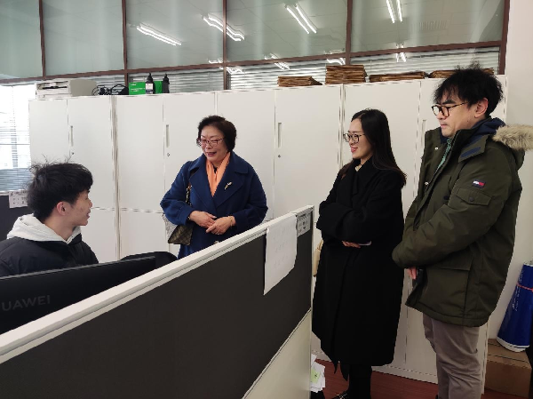 凌慧义到学生实习岗位上关心其实习适应、工作内容及与企业老师的沟通情况,提醒学生要抓住机会感受职场环境、细致对待工作,通过实习提升职业素养和就业力。在与学生交流过程中,学院了解到该单位十分重视大学生实习实践,为本次寒假实习的9名学生均配备了资深员工作为带教老师,制定了带教计划,并根据学生住址、个人兴趣等情况进行了在支行和网点的实习岗位分配,将实习学生作为正式员工一样分配工作任务,让学生切实参与到一线工作中。在岗实习的学生很珍惜实习机会,表示虽然工作繁忙但切实感受到了职业环境中工作者的状态,能够将书本上学到的知识用在实习工作中,颇有收获。