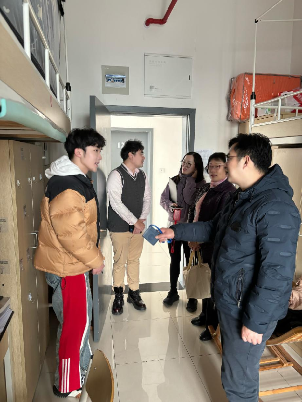 走访团队重点关注了学生开学后的学习生活情况、宿舍内卫生及安全问题,尤其关注检查是否存在私拉乱接电线、以及违规拆卸限位器等潜在安全隐患,共建一个安全、稳定、整洁的学生社区。在走访过程中,学院特别关注了少数民族同学的学习生活情况,殷林森表示,关心每一位同学的学习生活,尤其是少数民族同学的适应和发展,是学院工作的重要组成部分,希望同学们能够明确学习目标,珍惜大学时光锻炼自己、提升自己。