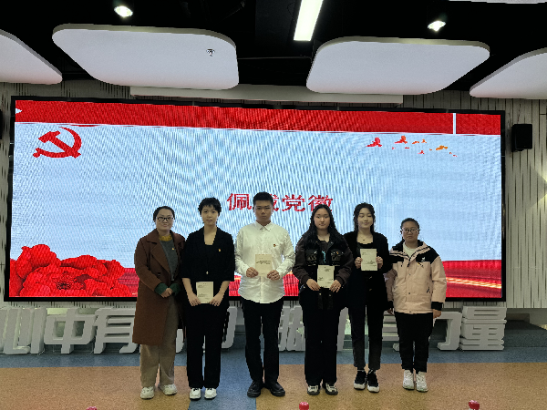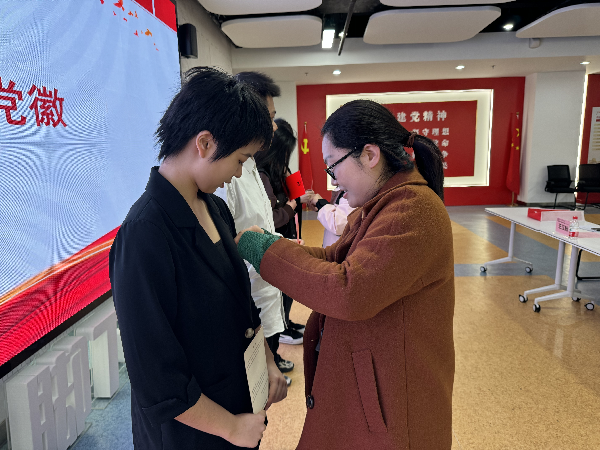 betway·必威西汉姆联党总支组织委员陶敏宣读了经学校党委批准的新发展党员名单。党支部书记为新党员们佩戴党徽,并颁发《入党通知书》。