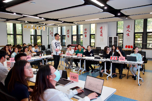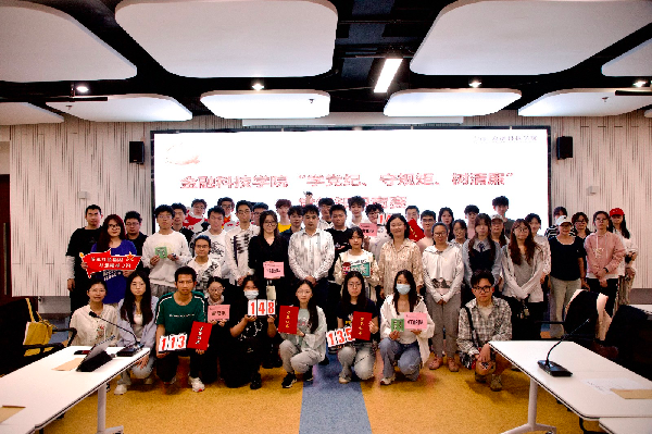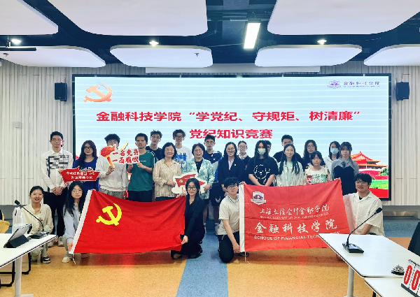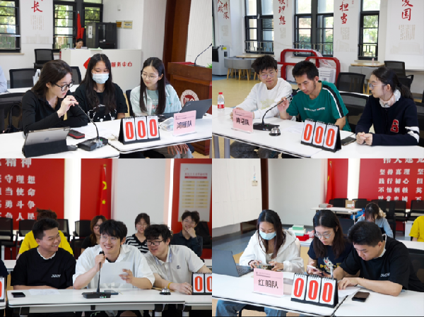 本次竞赛除了党纪党规,还融入了新一轮本科教育教学审核评估和学生手册应知应会,采用团队作答,积分排名的形式进行,设置必答环节和抢答环节。以金融科技系师生党支部、金融工程系师生党支部、青马研分会、发展对象分党校培训班为单位,共组建红船队、鸿雁队、全都队、青马队4支队伍参赛。