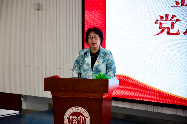 凌慧义致开场词,她向同学们阐释了全党开展党纪学习教育的深刻意义,并提出了四点希望,一是严明纪律规矩,自觉把“两个确立”、“两个维护”融入精神血脉、扎根灵魂深处,确保党纪学习教育取得实实在在的成效;二是带头学习,当好党纪党规的传播者,将党纪学习教育融入日常、抓在经常,始终做到忠诚干净担当;三是发挥表率作用,当好纪律规矩的引领者,发挥示范带头作用;四是勇于担当,当好清风金科的践行者,要遵规守纪,做到心有所畏、行有所止、严格自律,扣好人生的“第一粒扣子"。