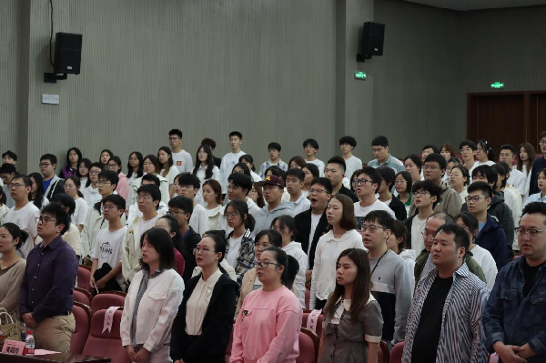全体新生共同朗诵拜师词,向全程导师行拜师礼。