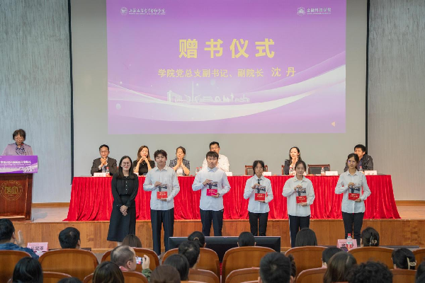 学院党总支副书记、副院长沈丹向2024级各新生班级赠送《习近平与大学生朋友(第二卷)》,鼓励同学们积极学习习近平总书记薪火相传的青年观。