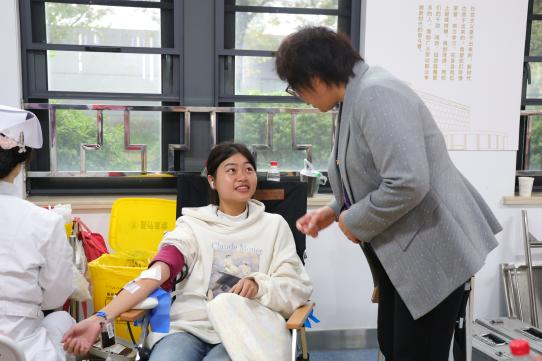 学院领导亲切慰问献血同学,对同学们的无私奉献行为表示赞许,并鼓励大家继续传递正能量。
