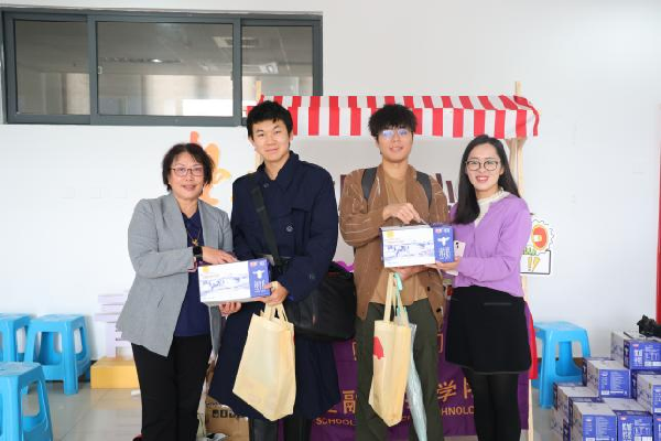 献血结束后,同学们在志愿者的引导下,领取了学院精心准备的慰问品。