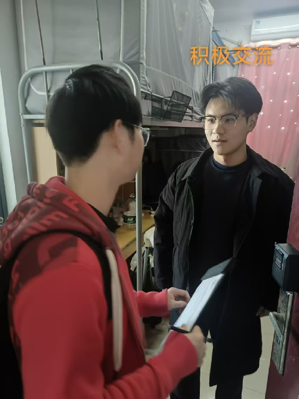 此次安全检查行动期间,老师们与同学们亲切交谈,重点关注宿舍内是否存在存放易燃易爆物品、使用违章电器等安全隐患问题,同时对宿舍卫生环境提出整改建议。凌慧义表示通过宿舍检查,旨在及时发现并纠正威胁宿舍安全的行为,并且临近期末考试,同学们应注意劳逸结合,重视身心健康,保持良好的学习和生活状态,共同营造一个安全、舒适、文明的寝室环境。