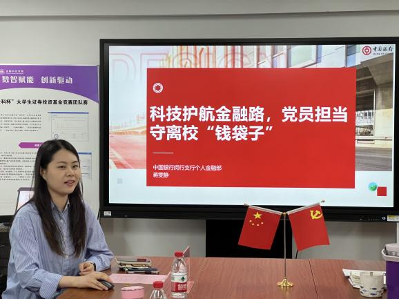 中国银行闵行支行的蒋雯静围绕《科技护航金融路,党员担当守离校“钱袋子”》作宣讲,她结合当前外汇政策与金融合规实践,引导同学们牢固树立合规意识、风险意识和纪律意识,并指出未来走上金融岗位后,要时刻守住规矩底线,将纪律观念真正转化为职业操守和行为准则。