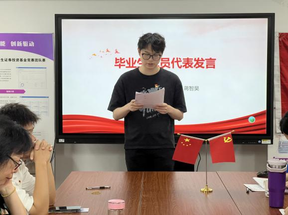 毕业生党员代表蒋智昊分享了入党初心与成长感悟,表达了对母校的深深感恩和报效祖国的坚定决心。他号召全体毕业生党员同志,毕业后继续走好学史明理、守正创新之路,以实际行动践行党员责任。