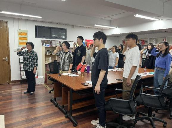 最后,全体党员在凌慧义书记的带领下重温入党誓词,铿锵誓言在会场回荡,为本次离校教育画上庄严句号。