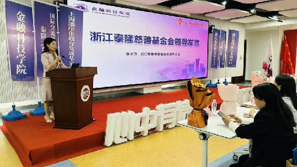 浙江泰隆慈善基金会项目总监蔡函孜发言,她对学院给予项目的全程支持表示感谢,她认为学校的细致保障让学生的成长从零散走向系统。她肯定了学生们在研学中用脚步丈量世界、用心灵沉淀成长的努力。她表示基金会将持续为立信学子搭建成长阶梯,为学子从校园走向社会提供“温暖底气”,并期待学子们用行动传递善意、书写时代担当。