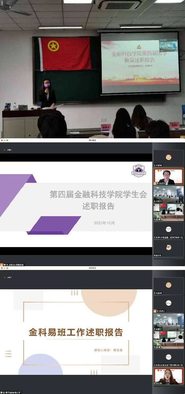 第四届团委副书记韩雪宁同学、学生会主席苏炳文同学、易班分站站长黄艺涵同学分别向大会作工作汇报,重点介绍学院在过去一年中的学生活动开展整体情况、赛事获奖、思想建设、改革发展等具体情况。