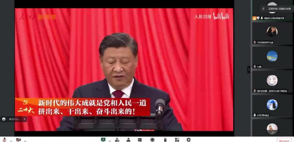 会议中团委学生会成员共同观看《二十大报告金句》视频,深刻感受到过去百年来,中国青年紧紧跟着党,把青春的忠诚、奋斗和光荣,镌刻进民族复兴史册里。历史是昨天的当下,当下是未来的历史。