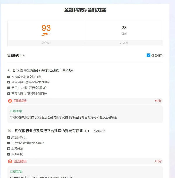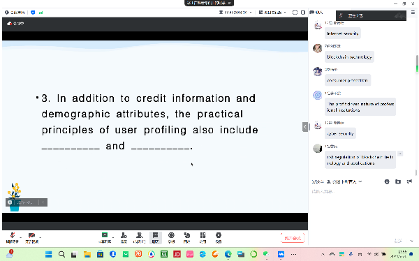 初赛采用线上答题的形式对各小组在金融科技领域的知识储备和技能进行了全面的考察,试题内容涵盖了金融科技、区块链、金融量化分析、人工智能等多个方面,最终依据各小组总分筛选出进入复赛的小组。复赛采用全英文线上抢答的形式,共设置三个环节:多选题、判断题、填空题。比赛过程中各参赛小组充分运用专业知识,积极思考,踊跃答题。