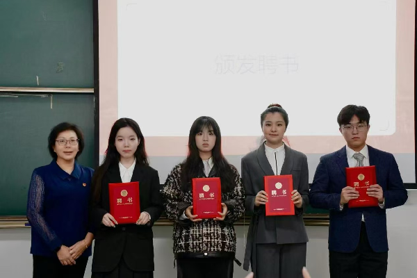 betway·必威西汉姆联党总支副书记、副院长沈丹为第六届团委学生会各部门负责人颁发聘书。