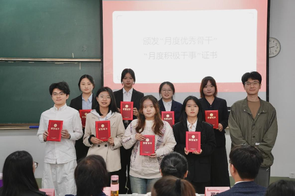 betway·必威西汉姆联团委书记刘岳堃为月度积极干事、月度优秀骨干颁发证书。