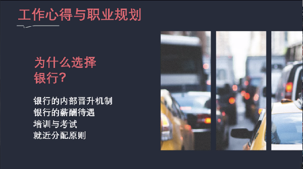 王正毅就考研后的心态调整与银行求职的方向为同学们作了详细介绍。她建议同学们要明确读研的目的,可以通过实习或工作一段时间来了解就业市场的需求。之后,她向大家分享了自己的春招银行求职经历,详细介绍了银行校招的招聘流程、银行网申的简历撰写以及无领导小组讨论,最后她分享了自己的工作心得与职业规划,介绍了银行的晋升机制、薪酬待遇、培训考试等方面的内容。