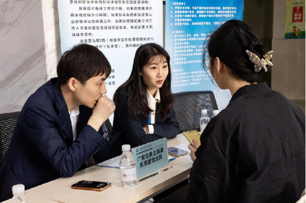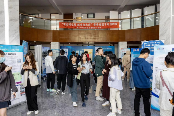 招聘会现场求职氛围热烈,秩序井然,毕业生与用人单位招聘互动交流,实现现场宣讲、收取简历与初面“一站式”服务。此外,王军华、解丹阳走访了两家学院利用教学楼层走廊搭建的共享交流空间,依托“菁才会客厅”、“IN职场”职业工作室提供就业创业、生涯规划、考研留学咨询等多种个性化指导服务,促进学生成长发展。招聘会现场共收到150余份简历,部分毕业生和用人单位达成初步意向。