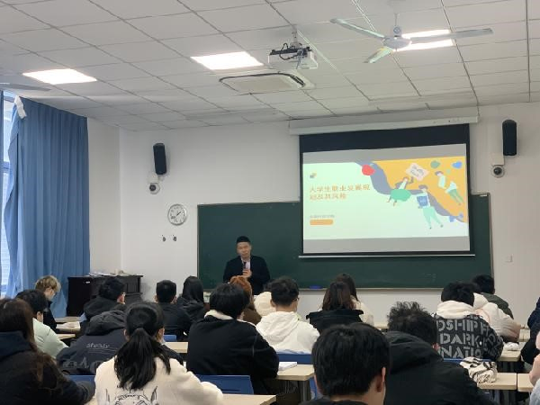 讲座伊始李俊杰老师通过简单的事例向大家阐述职业发展规划和毕业方向选择,同时运用案例对就业中存在的法律问题进行风险分析。在讲座过程中李俊杰老师不断抛砖引玉,通过多次引导同学们一起分析具体案例,引起了同学们极大的兴趣并积极投身于讨论中,现场气氛活跃。同学们纷纷表示从中学到了许多实用性的知识,益匪浅。此次讲座不仅让同学们更加明确了自身的发展道路,还提高了同学们的自我保护意识与观念。