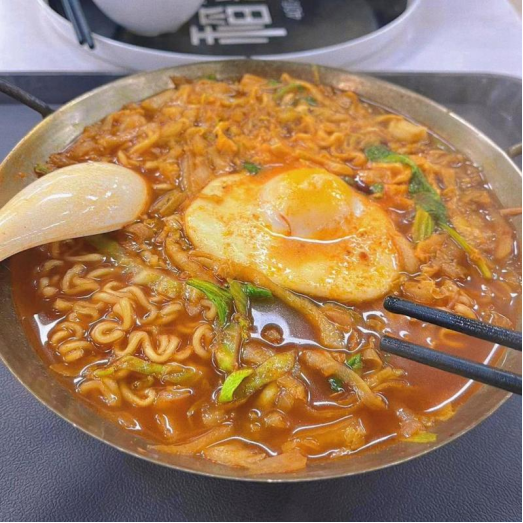 韩式辛拉面,面条劲道爽滑,汤汁浓郁鲜香,可选择的配料丰富。学校里的韩国料理,总让人惊喜满满,让你不出校门也能体会不一样的美味。
